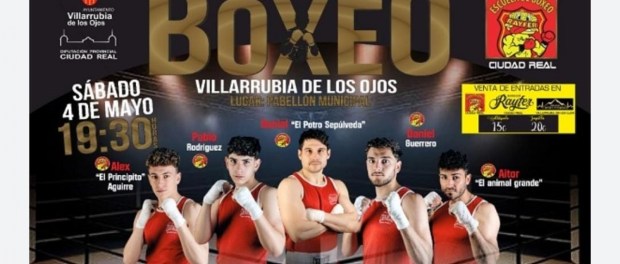 El Pabellón Municipal de Villarrubia de los Ojos (Ciudad Real) acogerá la primera Velada de Boxeo este próximo sábado, 4 de mayo, a las 19:30 horas. Un evento en el que se disputarán un total de 11 combates entre los mejores boxeadores de la provincia de Ciudad Real, Albacete, Córdoba y Madrid.