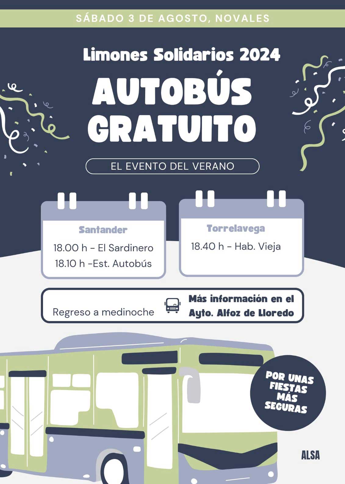 La empresa de autobuses Alsa pondrá el sábado 3 de agosto un autobús a disposición de la Asociación Limones Solidarios de Novales para que quienes lo deseen puedan acudir a la fiesta que se celebrará en el parque de La Aceña, sin necesidad de conducir.