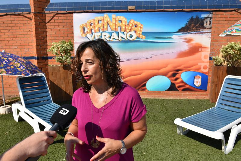 La concejala de Festejos, Alicia Loro, atendió a los medios esta mañana desde la Zona Joven, donde se están ultimando los preparativos para la segunda edición del Carnaval de Verano, que contará con una barra dispuesta por Wica Restauración.