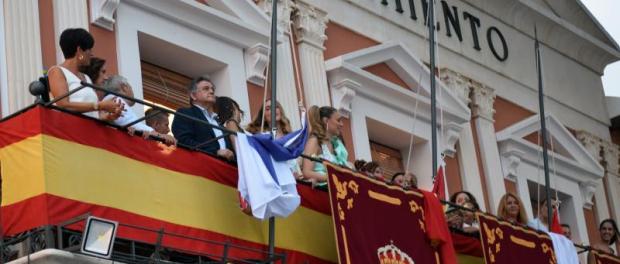 Al son de la popular Somos de Daimiel, del daimieleño Carlos Redondo, llegó la comitiva municipal al balcón del Ayuntamiento donde tuvo lugar el izado de banderas que, en esta ocasión, contó con la presencia de Laura Cabanes, primera deportista daimieleña en participar en unos Juegos Olímpicos, pregonera además de la Feria y encargada de enarbolar la bandera de España. Por su parte, el primer edil izó la de Daimiel, mientras que las representantes del Coro Romero Virgen de la Cabeza, entidad que este año fue galardonada con la Medalla de Honor en su 25 aniversario, levantaron la bandera de Castilla-La Mancha. Las reinas infantil y juvenil de la Feria fueron las responsables de izar la bandera europea.