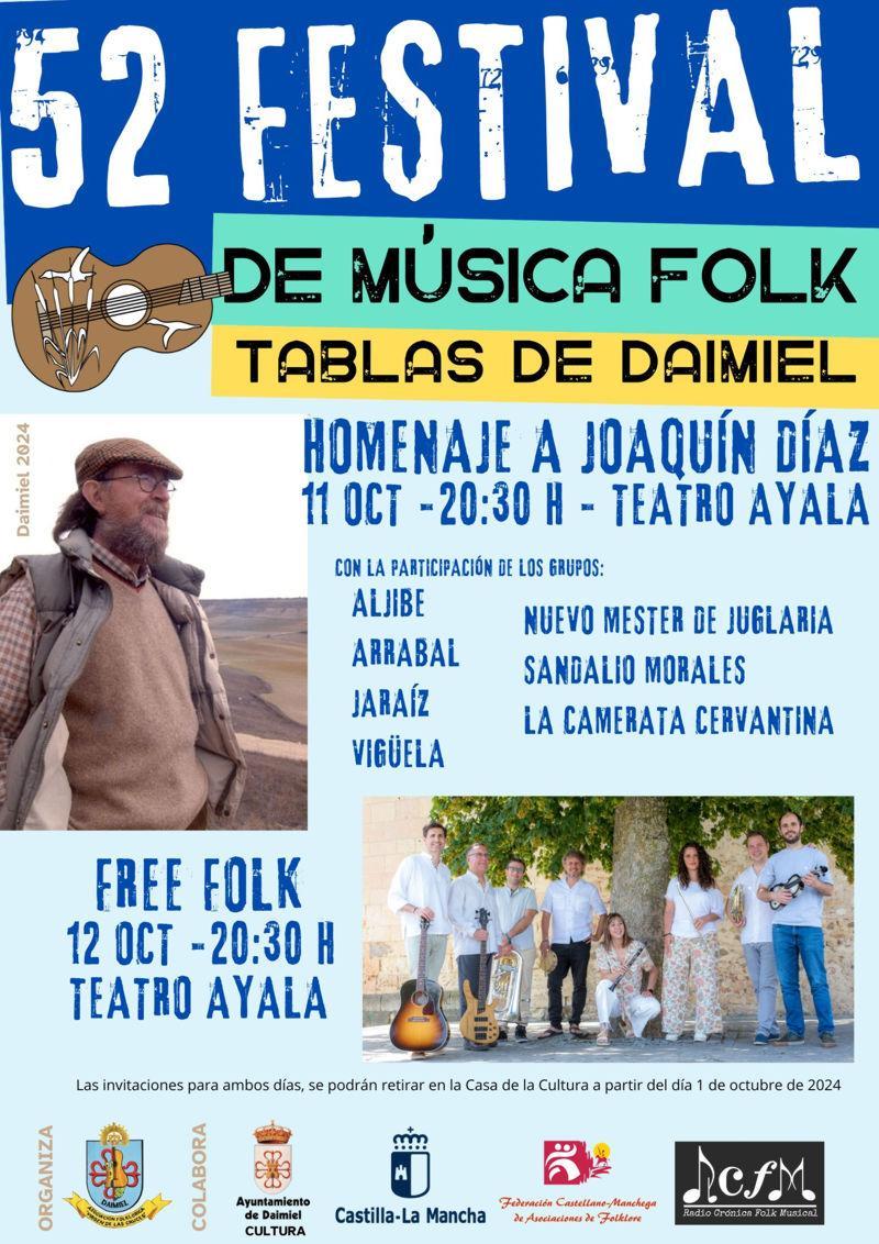 Daimiel Noticias.– La asociación folklórica ‘Virgen de las Cruces’ ya tiene todo preparado para una de las ediciones del Festival Folk ‘Tablas de Daimiel’ que más expectación ha levantado en los últimos años. La razón no es otra que el homenaje que va a brindar a Joaquín Diaz, a la figura referente, al “rey de reyes” del folk en España, como lo ha definido Jesús Camacho, de la asociación organizadora.