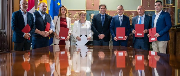 Se trata de proyectos “complementarios” a los sitios del geoparque que ya existen en estas comarcas, ha explicado el presidente de la Diputación Miguel Ángel Valverde, tras la firma con los alcaldes de estas localidades de distintos convenios para desarrollar estos centros con fondos del plan de sostenibilidad turística, este lunes en el Palacio Provincial, sede de la institución.