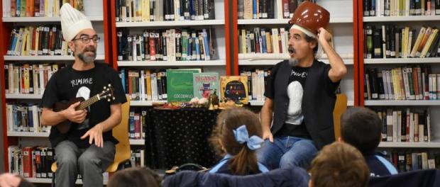 Daimiel Noticias.- Los ‘Primigenius’ han cocinado este jueves divertidos cuentos para los más pequeños de Daimiel. La Biblioteca Municipal ha acogido una actividad protagonizada por esta pareja de cuentacuentos que, de manera divertida y entretenida, han preparado un menú especial compuesto de diferentes narraciones dirigidas a alumnos de 1º de Educación Primaria de varios centros daimieleños.