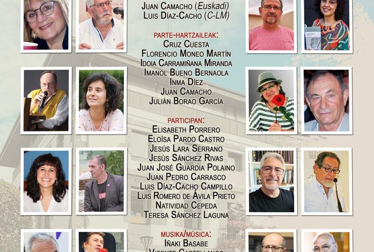 El evento, que está coordinado por el escritor y poeta solanero Luis Díaz-Cacho Campillo y por el dramaturgo y poeta vasco/manchego Juan Camacho, contará con diecinueve personas, entre poetas y músicos. Por Euskadi, además de Juan Camacho, serán Cruz Cuesta, Florencio Moneo Martín, Idoia Carramiñana Miranda, Imanol Bueno Bernaola, Inma Díez, Julián Borao García y el cantautor, Iñaki Basabe.