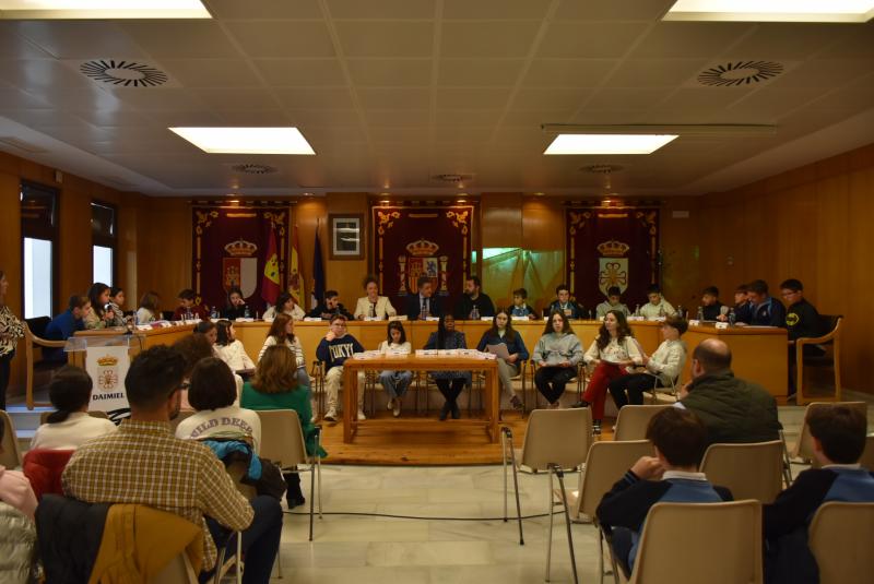 El Salón de Plenos estuvo abarrotado para la ocasión con una selección de estudiantes de los centros educativos daimieleños, quienes también pudieron conocer la preocupación sobre un alumbrado público que consideran tenue y la posibilidad de reforzarlo; aunque sobre este asunto Sierra se remitió a los criterios fijados en materia de sostenibilidad.