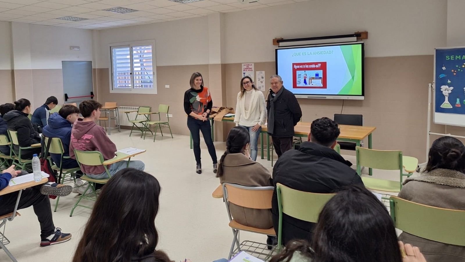 Alumnado de Secundaria y Bachillerato de estos dos institutos de Secundaria participó en las charlas, impartidas por la psicóloga clínica Gema Peinado. Un total de 120 alumnos/as tomó parte en estas charlas-taller, y durante las mismas realizaron varios cuestionarios y ejercicios prácticos de manejo de ansiedad.
