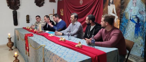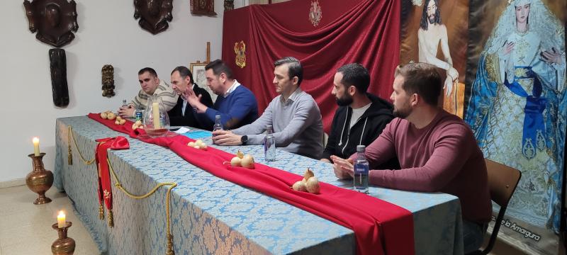 En la mesa se sentaron, por un lado, el presidente de la Cofradía de Nuestra Señora de la Soledad de Daimiel, Juan Diego Caro; Francisco Muñoz Torija, capataz en la Hermandad del Prendimiento de Ciudad Real; Eusebio Ortega Martín de la Sierra en representación de la Cofradía del Santísimo Cristo de la Expiración y Ntra. Sra. de los Dolores; Aitor Ramos Echeverría, costalero en la Hermandad del Prendimiento de Jesús Cautivo y María Stma. de la Salud de Ciudad Real y Juan Luis Huertas Díaz, capataz de cofradías.
