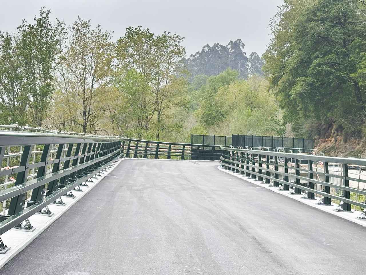 - Abril 2025 El tablero, de tres vanos y apoyos especiales para reducir vibraciones, entra en servicio junto con una calzada renovada que conecta el barrio con la carretera comarcal del Camarao.