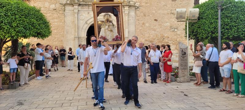 A pesar del intenso calor, la imagen fue arropada por los daimieleños y daimieleñas durante su recorrido por las calles más céntricas de la ciudad desde la parroquia de San Pedro hasta Santa María, donde una representación de las Hermandades de Gloria le daba la bienvenida.