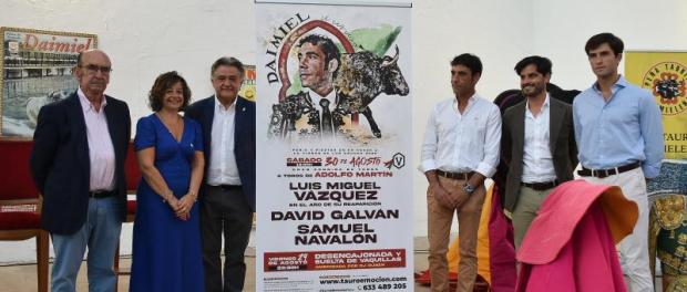 La presentación tuvo lugar en la tarde del jueves en el patio del Museo Comarcal de Daimiel, con la presencia del ganadero Adolfo Martín, representantes de la empresa organizadora del festejo Tauroemoción, los toreros, y autoridades y aficionados.