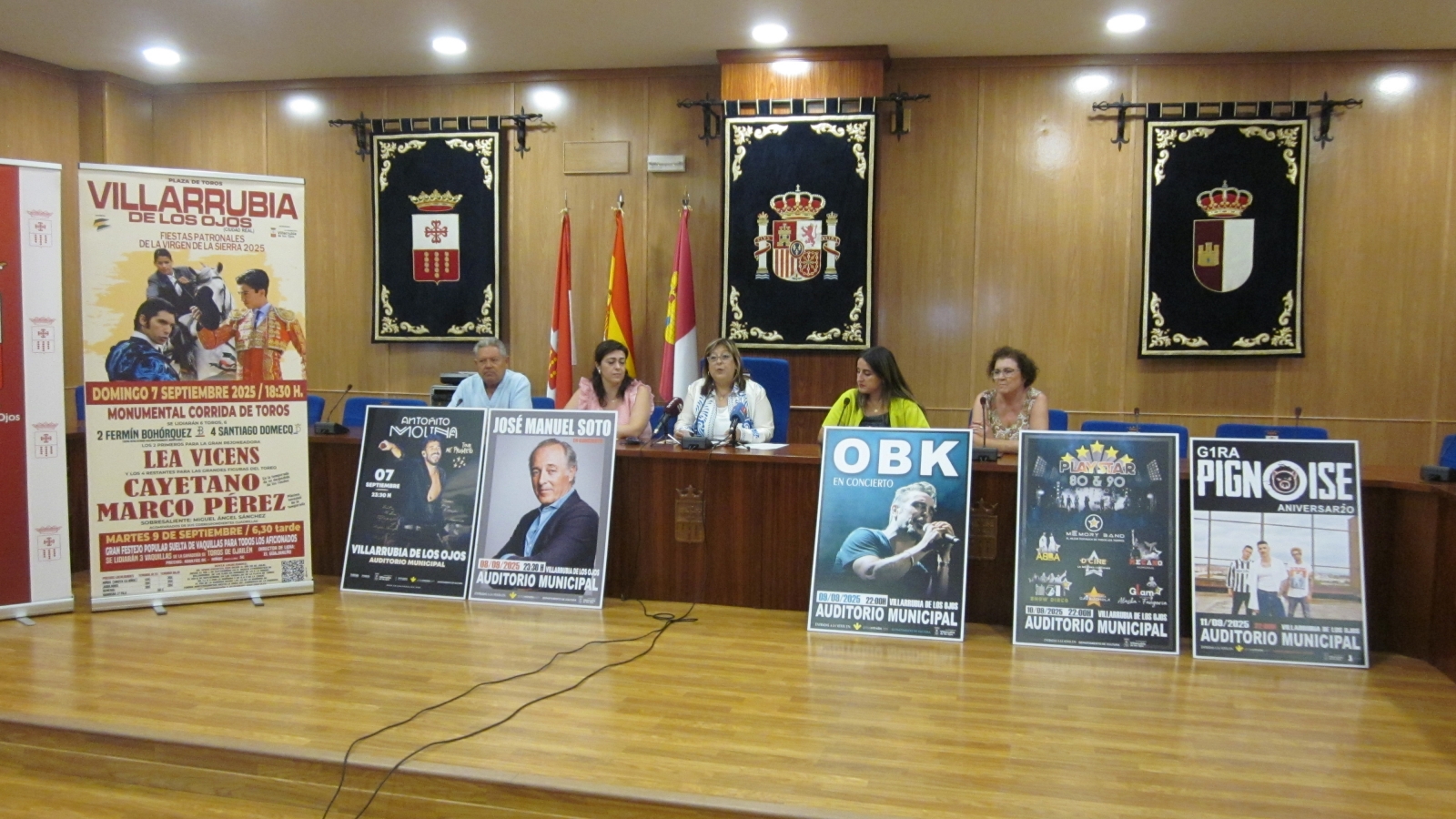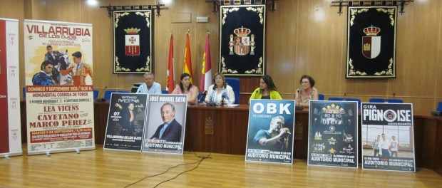 La alcaldesa de Villarrubia de los Ojos, Encarnación Medina, y la concejala de Festejos, Rosa Redondo, junto a otros miembros del equipo de gobierno municipal, presentaron este fin de semana los conciertos principales de la próxima Feria en el salón de plenos del Ayuntamiento.