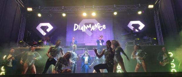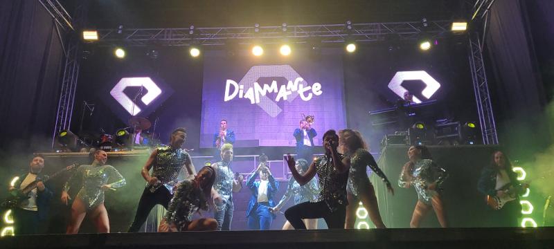 Daimiel Noticias. – 40.000W de sonido, 16 artistas en el escenario y más de cuatro horas de música con un único descanso. Así es Diamante, la orquesta encargada de animar la madrugada del martes en el Auditorio Municipal tras una jornada repleta de actividades y celebraciones en honor a la Virgen de las Cruces en el día grande de la Feria y Fiestas.