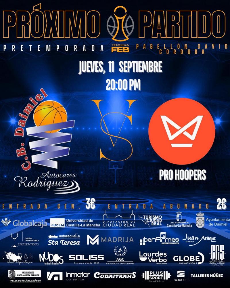 Daimiel Noticias.- El Autocares Rodríguez Daimiel disputa este jueves, 11 de septiembre, su primer test de pretemporada a las 20:00 horas en el Pabellón Municipal David Córdoba Ortega de Daimiel frente al combinado internacional Pro Hoopers, integrado por jugadores con experiencia en diferentes ligas.