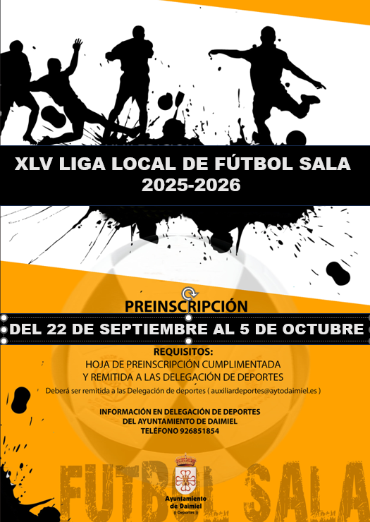 Los equipos interesados tienen que rellenar una hoja de preinscripción debidamente cumplimentada y entregarla en la oficina de Deportes, ubicada a la entrada del Pabellón David Córdoba, o mandarla por correo electrónico a la dirección: auxiliardeportes@aytodaimiel.es.