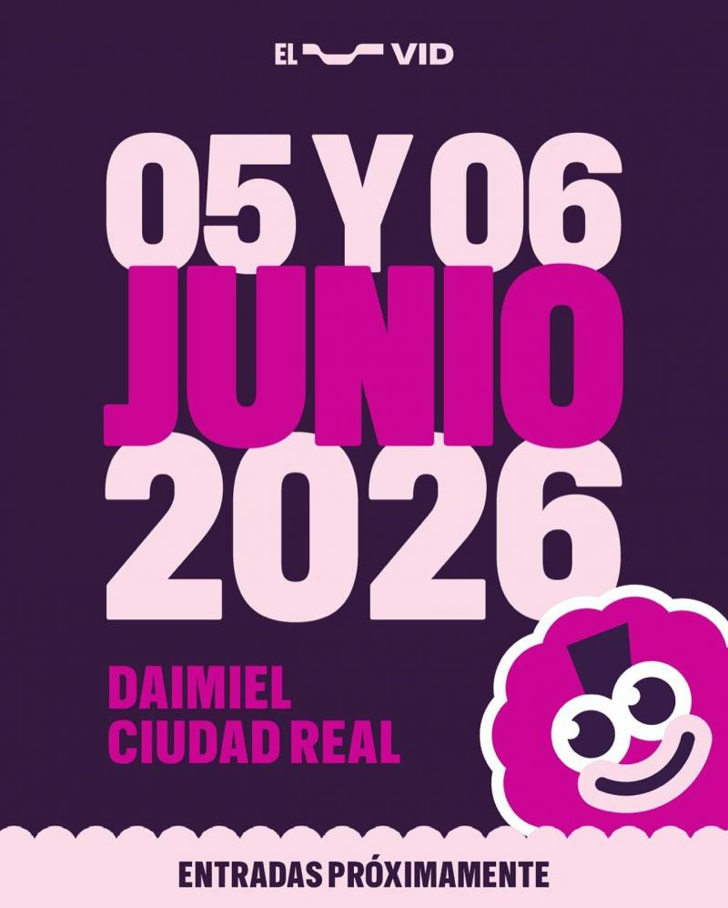 Daimiel Noticias.- El festival El VID ya tiene nueva fecha en el calendario. Su cuarta edición se celebrará los días 5 y 6 de junio de 2026 en Daimiel, trasladándose de mayo a junio para dar respuesta a las peticiones del público y evitar coincidir con otros grandes eventos culturales de la región.