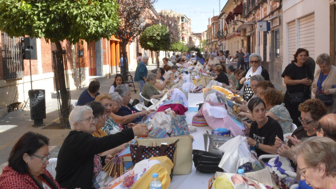 Alrededor de 200 encajeras procedentes de numerosos pueblos de la provincia de Ciudad Real (Ciudad Real, Campo de Criptana, Las Labores, Villarrubia de los Ojos, Bolaños, Aldea del Rey, Miguelturra, Argamasilla de Alba, Pozuelo de Calatrava, Alcolea de Calatrava, Piedrabuena, Valdepeñas y Malagón), así como de Villafranca de los Caballeros, Mocejón, Consuegra y Urda, de la provincia de Toledo, se han dado cita este sábado en la calle Tercia, que se ha vuelto a llenar de alegría, bullicio y convivencia.
