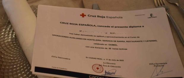 Daimiel Noticias. – El restaurante daimieleño ‘Casa Santa María’ ha acogido hoy miércoles la ceremonia de entrega de diplomas del curso de Servicio de Barra, Restaurante y Catering organizado por Cruz Roja. Han diplomado 13 de los 17 alumnos y alumnas que comenzaron el curso el pasado junio.