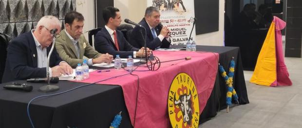 El sábado por la tarde se celebró en los Salones Lady Gema la tertulia taurina bajo el título ‘Luces y sombras del toreo’, en la que intervinieron el presidente nacional de UFTAE, Jorge Fajardo; el torero Luís Miguel Vázquez; y el torero triunfador de la Feria 2025, David Galván. La tertulia, abierta al público, contó con una notable asistencia y precedió a la tradicional cena de hermandad y a la entrega del Trofeo Triunfador, que este año fue entregado a David Galván por el alcalde, Leopoldo Sierra, junto al vicepresidente de la peña.