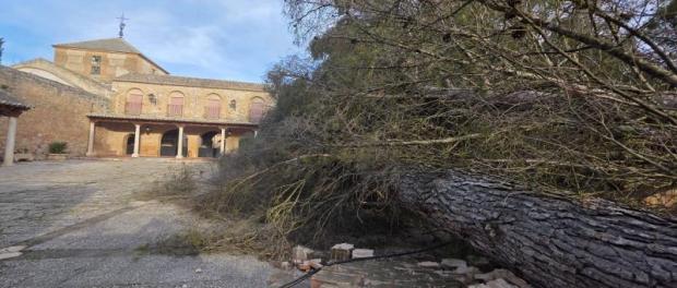 Según ha explicado López de la Nieta, las fuertes rachas de viento han provocado la caída de numerosos pinos sobre el edificio, además de causar el desplazamiento de tejas en las cubiertas.