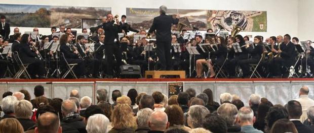 Daimiel Notcias.- La Banda Municipal de Música de Daimiel celebró sus 150 años de historia con un concierto muy especial junto al virtuoso de la corneta cofrade Dani de Baza. Una cita especial que reunió a casi medio millar de asistentes en el Pabellón Ferial y que, en palabras del miembro y presentador del acto, Román Cejudo, «quiere ser memoria, orgullo y, sobre todo, agradecimiento para nuestro pueblo», subrayando el espíritu municipal y popular que define a la banda desde su fundación en 1876.