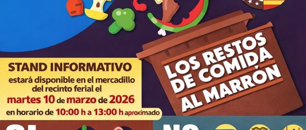 Con el objetivo de seguir fomentando el reciclaje y la correcta separación de residuos, se instalará un stand informativo en el mercadillo del recinto ferial el próximo martes 10 de marzo de 2026, en horario aproximado de 10:00 a 13:00 horas. En este punto se ofrecerá información y se resolverán dudas sobre qué residuos deben depositarse en el contenedor marrón.