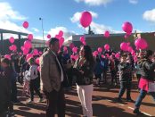 Malagón. Suelta de globos contra la violencia de género y el machismo.